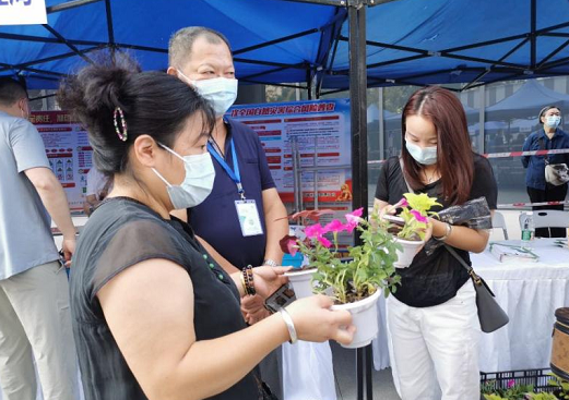 “哇,这个牵牛花真漂亮!”“这个绿叶子的植物会不会开花啊?”在园林局的展台前,来领取绿植的市民在志愿者的引导下,有序排队,等待选择自己心仪的绿植。林业局工作人员跟记者说,其实种植盆栽是一门技术活,施肥和浇水多少都涉及到存活率,虽然市民的热情非常高涨,但还需认真听专业人员的指导和示范,才能把花养好。