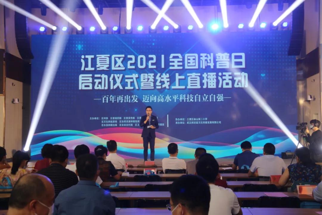 9月11日上午,2021年江夏区“全国科普日”启动仪式暨线上直播活动在江夏区庙山第二小学正式启动,活动以“百年再出发,迈向高水平科技自立自强”为主题,通过情景朗诵、科普节目、科技互动、科技成果展示等形式开展,采取“线上融媒互动传播+公益科普公益讲座”的方式,现场直播面向全网同步开展,52万余名市民通过腾讯直播等平台在线上共享了这场科普盛宴。