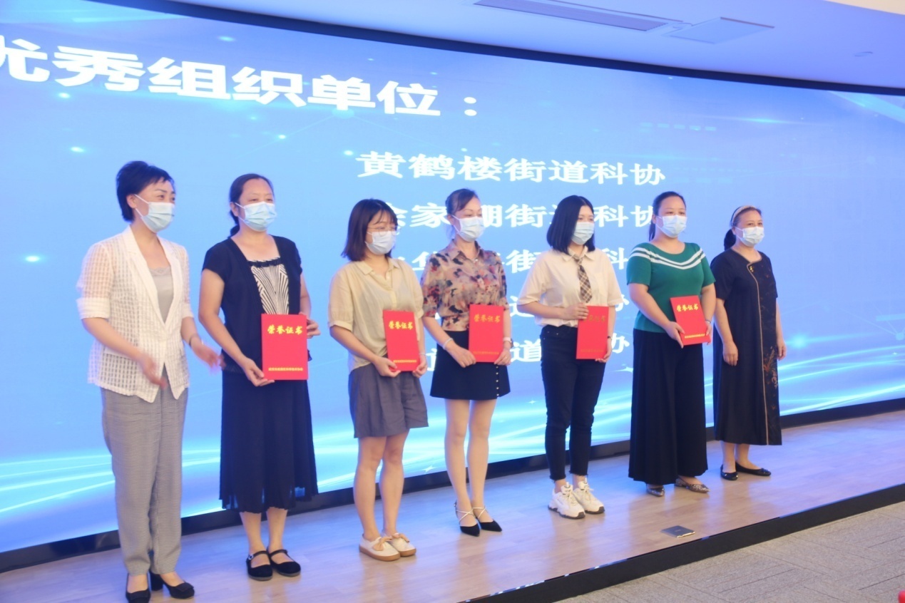 图为与会嘉宾为网络科普知识竞答活动优秀组织单位和答题先进个人颁发证书。