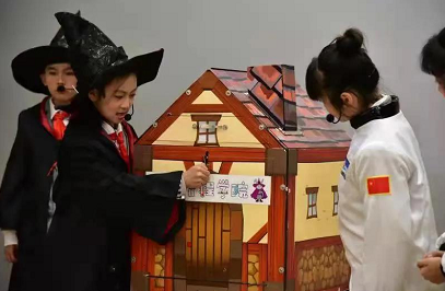 舞台上,4名“小小科学家”和4名“小小魔法师”正在开展一场科学和魔法的比赛,他们都是江岸区首批“红领巾小小科普员”,正在演绎他们原创的科学魔法剧《我们的魔法是科学》,科学与魔术的融合,让人眼前一亮,有趣又充满魔力,引得台下的居民群众和学生阵阵掌声。