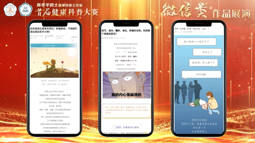 参赛作品不仅题材选择广、作品形式广,更把专业医学知识“翻译”成老百姓听得懂、学得会、用得上的健康知识,做有温度、有热度的健康教育。武汉市红十字会医院的医务工作者脱下白大褂换上演出服,一曲《Glu探戈》歌舞剧把糖尿病筛查和饮食要点演绎得通俗有趣;湖北省肿瘤医院的医护人员“变身”人体消化器官,实力演绎滚烫的火锅食材入口的后“旅程”,生动展示吃火锅不烫伤消化系统的正确方式;成人的药品分量减半能给儿童服用吗?结合儿童用药的误解,华中科技大学同济医学院附属同济医院的医生制作小视频讲解《儿童用药五大热搜》;鉴于目前的疫情防控形势,我们提倡少聚集或不聚集,但运动达人们坐不住,武汉市第四医院的医生言传身教演示《疫情宅家跑步健身需要注意什么》;武汉市疾病预防控制中心变身“段子手”,制作防艾手绘系列条漫。肿瘤是影响群众健康的重大疾病,不少市民谈癌色变,武汉市中心医院用一条微信讲清结节、息肉、囊肿、增生、肿瘤标志物,到底哪个离癌症更近,湖北省肿瘤医院的医护人员普及乳房自检预防乳腺癌的窍门,华中科技大学同济医学院附属协和医院为肿瘤患者及其家属普及常见饮食误区。