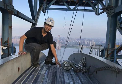 武汉杨泗港大桥的主缆由许多钢丝编制而成,是大桥的主要受力构件,也是大桥的生命线。为了能够让大桥用上国际品质最优的钢丝,作为设计负责人,张成东与大桥总设计师一起,到处联系钢丝生产厂家进行研究和试制。