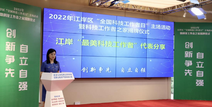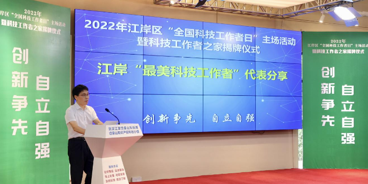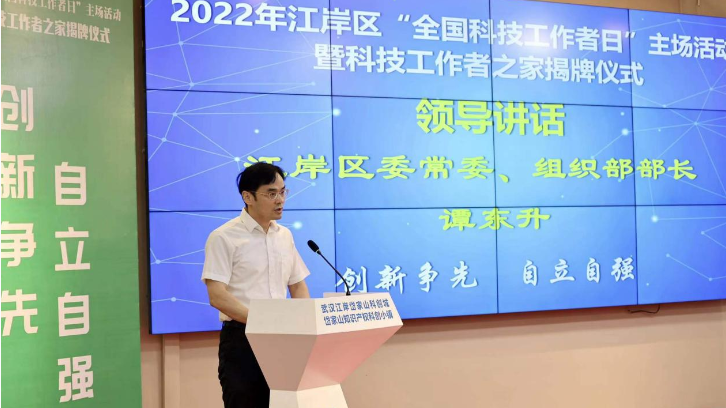 “长期以来,江岸区深入实施‘创新驱动发展’和‘人才强区’战略,着力构建‘531’现代产业体系,积极打造各类创新载体,推动科技成果转化落地落实,出台‘江岸高层次人才工程’政策,为科技工作者投身科技创新和经济建设主战场提供坚强有力保障。”江岸区委常委、组织部部长谭东升希望全区科技工作者不断坚定理想信念,始终心怀“国之大者”,肩负起时代赋予的重任,推动科技创新与经济社会发展深度融合,争当科技创新的领跑者、开拓者,争做科技普及、科技志愿服务的传播者、践行者,为加快建设“汉口之心、美好江岸”作出新贡献!