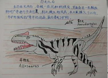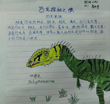 讲座结束后,同学们意犹未尽,更是主动向徐教授提问,还向徐教授展示了自己搜集了大量资料后亲手完成的预习笔记,关于恐龙时代的手抄报,徐教授表示深受感动。