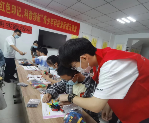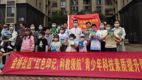 2022年5月28号上午9点30, 金桥社区15位小学生、10位家长和2名科技志愿者一同参加了由后湖街道金桥社区联合彩虹睿教服务中心组织开展的“红色印记,科教领航”科技周青少年科学素质提升课堂。