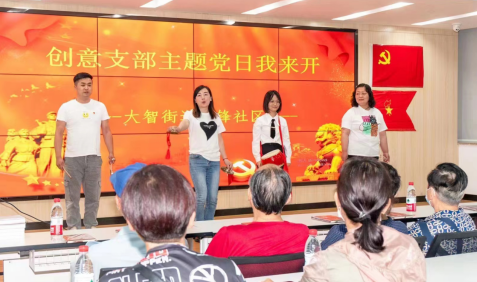 本次科普创意主题活动采取丰富的形式,包含奏唱国歌、诵读党章、重温入党誓词、才艺展示、红色传承等多个环节。活动在庄严嘹亮的国歌声中拉开帷幕,随后,社区党员代表任晓茜诵读了党章中关于党员义务的规定,诵读声中,大家把党纲党纪读进脑里、读进心里、读进灵魂,更加坚定了自己的革命理想信念和永葆共产党员先进性的崇高责任感。“先锋社区是我家,社区建设靠大家,人人都来把它夸——顶呱呱!”伴随着“咚咚咚咚,锵”的打击乐器声,先锋社区科普员代表詹莎莎、陈嫚妮、万英、朱意博等4人给大家带来生动形象、贴合社区科普工作实际、接地气的“三句半”表演《听我说先锋》。