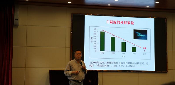 演讲中,张博士用不同的角度——“鱼”眼看长江,给大家生动地介绍了长江中常见的一些藻类、鱼类。还通过白鲟的灭绝、白鳍豚功能性灭绝、中华鲟危在旦夕和四大家鱼繁殖规模下降等详细的事例和数据,让同学们了解到长江“病”了,并和同学们分享了相关原因和生态保护的措施。