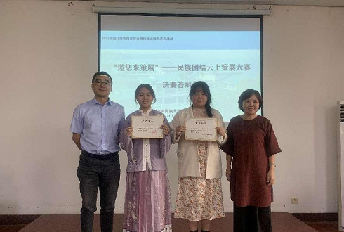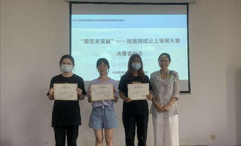为弘扬中华优秀传统文化,促进民族团结,构筑中华民族共有精神家园,充分发挥博物馆在文化自信和促进民族团结中的阵地作用,洪山地区科普展教联盟成员单位——中南民族大学民族学博物馆在2022年国际博物馆日和全国科技活动周期间,开展“邀您来策展”——民族团结云上策展大赛。本次大赛得到学校民族学与社会学学院、教育学院、经济学院等学院的广泛关注和参与,共收到43个参赛团队和选手的作品,历经一个月的线上初赛作品征集,经专家评审选拔,共有6个团队的作品脱颖而出,获得现场决赛的机会。5月27日下午,现场决赛答辩会在民族学博物馆二楼多媒体教室顺利举行。
