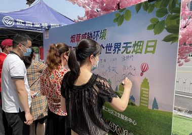 活动中,石牌岭社区和武商亚贸广场的科普志愿者、团委、妇联干部们向广大居民群众、过往市民发放控烟及健康生活方式手册100余份,并在活动现场悬挂宣传横幅1条、设置宣传展板3块、活动签名墙1块,并通过世界无烟日健康控烟有奖知识抢答方式,与现场居民群众开展互动。