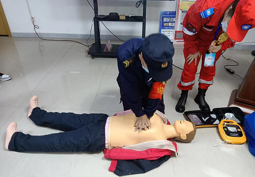 参加活动的人年龄从25至55岁不等,应急救援人员先给大家讲解相关知识。在讲解途中,遇到居民不理解的地方,授课人会邀请居民上台,进行演示。接下来是救护培训部分,在简单介绍心肺复苏理论和重要性后,授课人现场对人体模型进行CPR实操。由队员先做示范,边做边讲解,以理论讲述和实际演示的方法,对徒手心肺复苏的全过程“判断患者有无意识、呼救、清理口腔分泌物开放气道、人工呼吸、胸外心脏按压”进行了详细讲解,对每一环节的体位及各种手法等细节都一一演示,并就日常生活中容易出现的突发疾病急救措施与大家积极互动。同时,授课人还让在场的人员轮流上前演练,亲自动手实践心肺复苏、人工呼吸等技能,对于施救过程中的不当之处一一纠正,帮助大家在实际操作中加深印象,掌握急救技能。