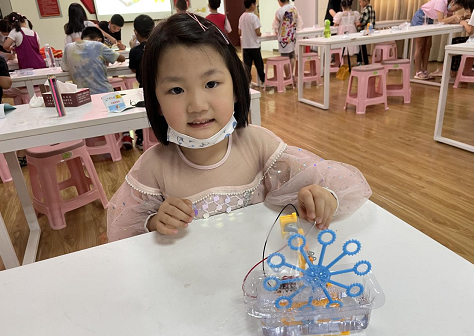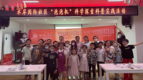 科学探索活动作为科学教育中的重要形式,其潜在的教育价值不断地被挖掘出来。为使学生积累和丰富更多的直接经验,促进学生综合素质的形成和科学探究能力的提高,培养学生的创新精神和动手实践能力,为学生的终身学习打下良好的基础,2022年6月19日水岸国际社区携手妙妙喵星球开展“泡泡机”科学探索实践活动。
