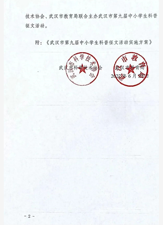 1.作品征集(6月-9月):主办单位向各区发放征文通知,并在《武汉科技报·少年科普》、《武汉科技报》、“科星网”“武汉科协”和“科技大武汉”微信公众号刊登通知。9月15日前,各区负责统一收集,武汉科技报整理各区作品及相关工作。