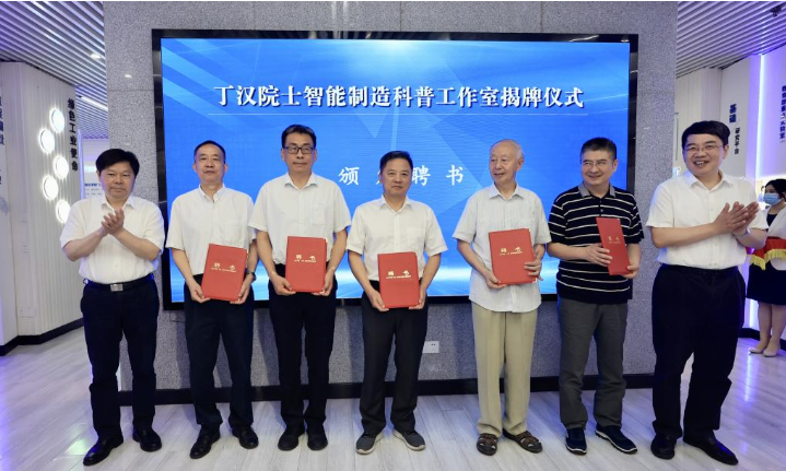 市科协网讯 6月30日,在湖北工业大学实训楼,全国首个以院士领衔命名的智能制造科普工作室——“丁汉院士智能制造科普工作室”(以下简称“科普工作室”)揭牌成立。
