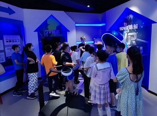 接着,付老师带领青少年进行科技设备体验,科普VR虚拟的科技知识,讲述6月份“神舟十四号成功飞天”、“福建号航空母舰落地下海”等实时科技知识,活动现场热闹非凡。