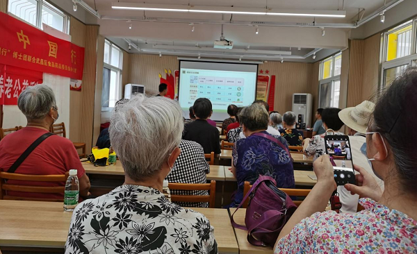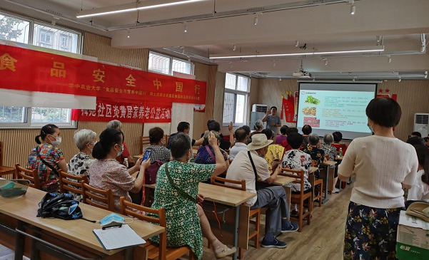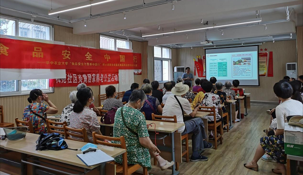 6月29日上午,武汉市武昌区中南路街梅苑社区联合华中农业大学“食品安全与营养中国行”博士团、武昌区食品药品委员会办公室、炎黄居家养老机构在梅苑小区内开展“食品安全科普讲座”。