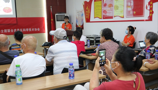2022年7月5日下午,华中农业大学“食品安全与营养中国行”博士团联同武昌区科学技术协会走进武汉市紫阳街道武泰闸社区红色家园,开展了主题为“疫情下的平衡膳食(老年人系列)”的科普互动讲堂。此次活动由博士团志愿者丁礼贤和李琪琪主讲,正大集团和达能集团赞助,以及三十余位社区居民参与。
