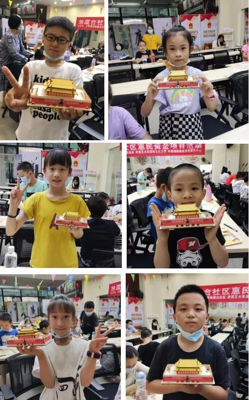 随后,谢老师为大家分发“天安门”的手工模型,在老师的指导和制作讲解下,大家将一块块小木板拼装起来,不一会一座座天安门模型展现在大家面前,孩子们非常自豪和高兴。