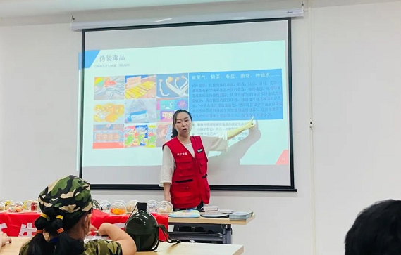 活动中,禁毒老师为孩子们详细介绍了毒品的种类、危害以及伪装性极强的新型毒品等内容,告诉孩子们要杜绝好奇心理,坚决抵制毒品的诱惑。并且着重介绍了由巧克力、奶茶粉、跳跳糖等伪装的新型毒品,提醒孩子们在生活中要学会自我保护,不能随意接受陌生人给的食物,提高警觉性,从小树立坚决不能碰毒的坚定信念。