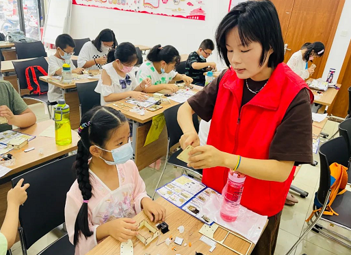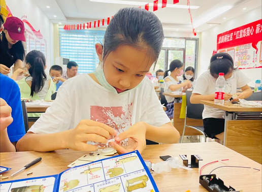为丰富辖区青少年的暑期生活2022年7月11日上午,紫阳街道武泰闸社区文明实践站“红星烁我心 薪火永流传”青少年暑期特色活动班在红色家园开课,社区将在此对来自辖区自主招募的30余名青少年开展为期十天的科普、非遗、智能机器人、红色文化系列课程。