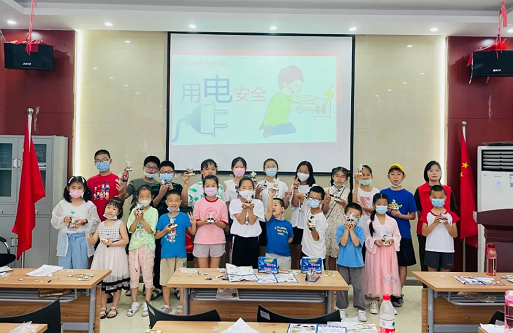 开班仪式上,来自社会组织贝贝团志愿服务中心的易老师向孩子们简单介绍了暑期特色活动班的时间、学习内容。随后我们第一个课程主题“少年求知,科技助力”科普篇章正式开启。首先老师对用电方面的理论知识的讲解,并围绕“电在生活中的应用”,“电的危害”以及“如何正确的使用电”三个方面向小朋友们进行讲解和提问,小朋友都积极主动的回答着老师所提问的问题,营造良好课堂氛围。