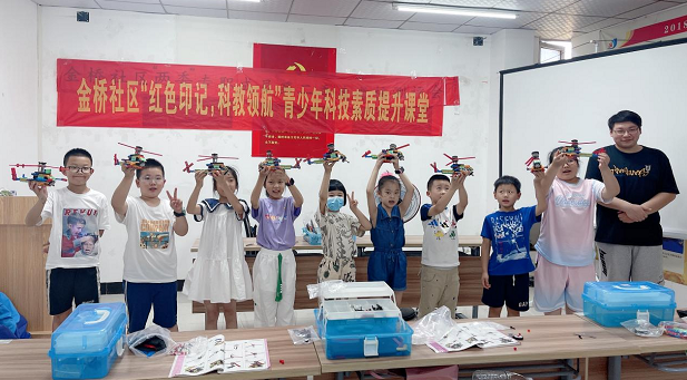 2022年7月14日下午2点半,后湖街道金桥社区联合彩虹睿教服务中心,在金桥社区多功能活动室组织开展青少年科技航天梦——直升机的制作活动,共有20位学员及家长参加。