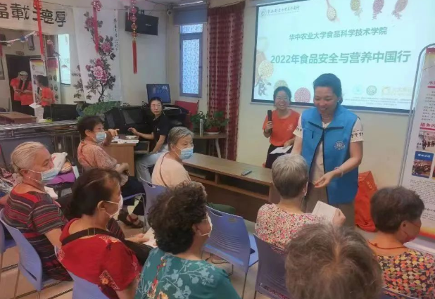 此次活动为华中农业大学食品科学技术学院2022年食品安全与营养中国行系列的一站,科普的专业性和丰富性都对社区居民来说是受益匪浅的。在讲座中,志愿者分别向辖区居民详细讲解了如何预防食物中毒、如何保持健康膳食、“三高”人员如何吃的健康等。