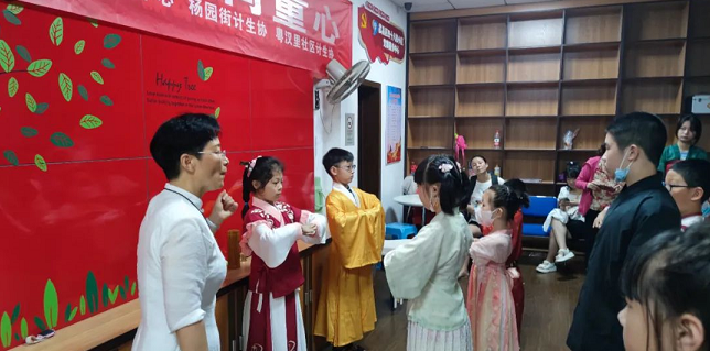 为丰富社区未成年人暑假文化生活,弘扬好家风,传承好家训,7月18日上午,杨园街道粤汉里社区特邀请了天行健社会工作服务中心的专业礼仪讲师开展“民俗文化润童心——汉服体验”活动。