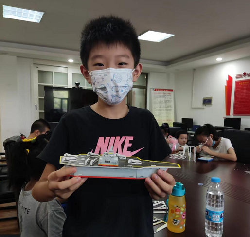 随后,彭老师与志愿者们向社区青少年们分发“航空母舰”模型材料,小朋友们热情激动,在老师的细心指导和志愿者的帮助下,大家互帮互助,最后将“航空母舰”模型成功制作完成,并合影留念。