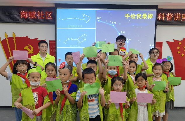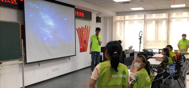 为加强天文科普启蒙教育,播种航天科技梦想种子,解决“双减”政策下青少年暑期“看护难”问题,8月4日,后湖街道海赋社区携手华中科技大学“喻竹计划”博士生服务团喻建江岸实践队为海赋社区青少年空间的孩子们带来了一堂主题为“小小天文学家的奇妙太空之旅”的天文科普课。