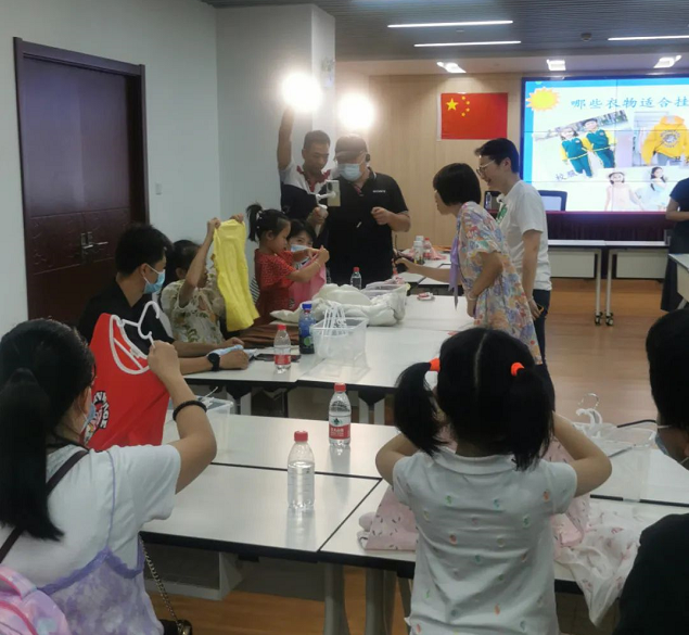 课堂上,既有收纳理念、衣橱整理窍门的分享,又有衣服折叠示范教学。小朋友们认真聆听,积极尝试,老师耐心指导,家长在一旁加油鼓劲,其乐融融。