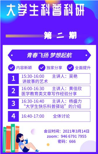 习总书记提出要把科学普及与科学研究放到同等重要的位置,是完全有利于社会和人民的。因此,引导医生乃至未来的医护人员更加重视科普是非常必要的,医学科普作为医疗领域相当重要的一部分,是提升人民群众科学素养,促进疾病预防的关键手段。医科大学生是一个基数庞大,同时充满活力和创作力的青年群体,他们能否成为科普的主力军呢?武汉协和医院肿瘤科的杨盛力副教授通过近2年的探索,告诉了我们答案。