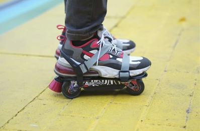 这款电动轮滑鞋可以直接安装在用户的鞋子上,可以满足用户的短距离通勤需求。产品整体框架由一体式铝合金制成,可以承受跳跃时带来的冲击力,配有四个耐磨橡胶轮和脚跟制动器。脚垫采用了橡胶脚垫,还配有一个松紧带和脚踝支撑,可以快速绑定到用户的鞋子上面。