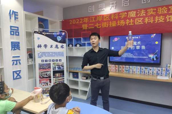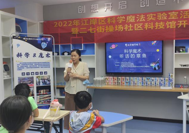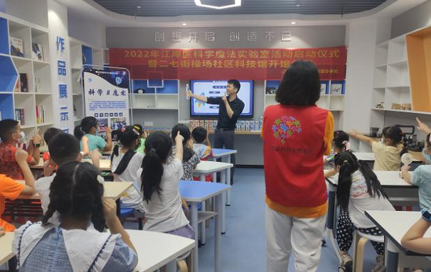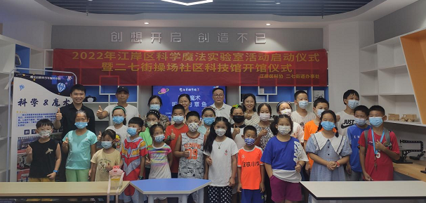 为认真落实党员干部“下基层、察民情、解民忧、暖民心”实践活动部署要求,推动“武汉以我为荣”文明实践活动走实见效,丰富江岸区青少年暑期精神文化生活,提升青少年沟通交流能力,切实推进江岸区青少年科普教育取得实效,8月12日下午,由江岸区科协、二七街道办事处主办,江岸区新时代文明实践志愿服务总队科学普及志愿服务队、魔法启程科技志愿服务队承办的江岸科学魔法实验室活动启动仪式暨操场社区科技馆开馆仪式在操场社区科技馆举行。