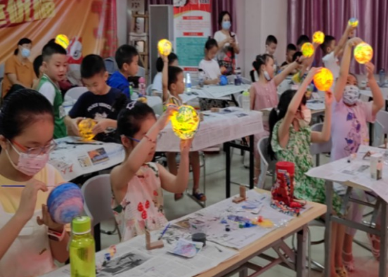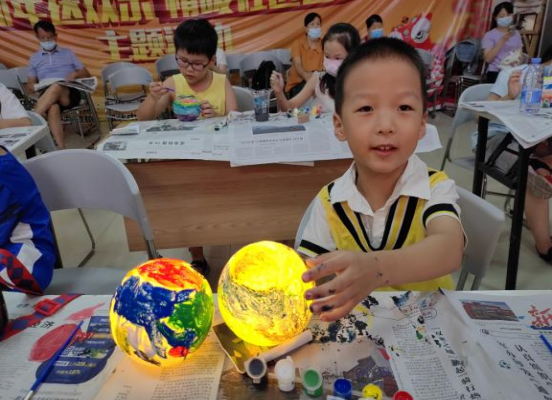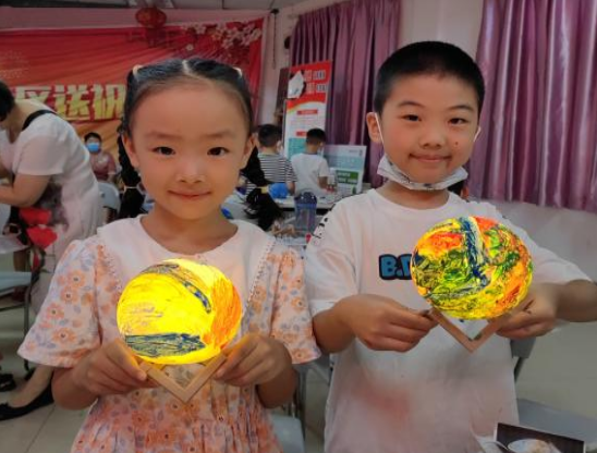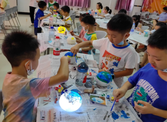 课堂气氛热烈,青少年们兴奋不已,纷纷举起制作成功的航天星球灯向老师讲述自己的创作理念,有位青少年说:“我长大了要当解放军,开发航天技术,飞上星球为人类寻找新能源。”