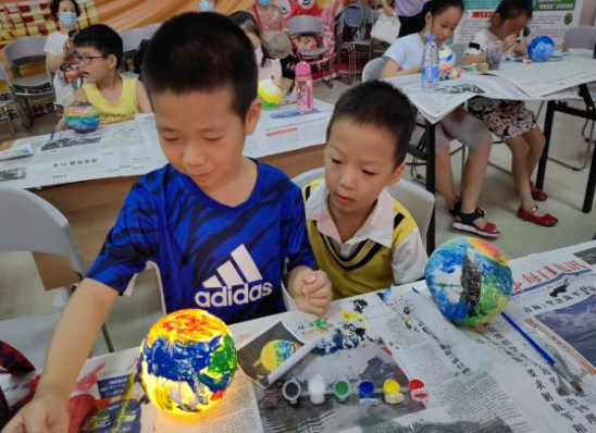 随后,社工老师为青少年们发放星球航天模型材料,并向大家讲解制作原理及制作过程。青少年们将自己心目中向往航天星球的样子通过画笔在星球上绘制,有的画月球、有的画地球、还有的画天王星……