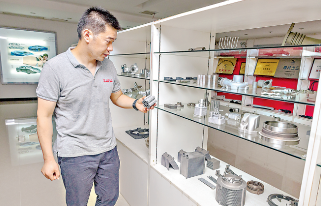 武汉萨普科技股份有限公司执行董事张建军拿起一款新能源汽车换热器介绍,别看它只有平板大小,内部却布满了数十个细孔,制作工艺十分精良。据悉,如果用传统的冲压加焊接的加工方法,至少需要30天才能完成,且材料浪费严重。而用3D打印,设计师只要提前数据建模,20多个小时就能打印出来,节省了原材料成本,又缩短了工期。