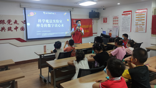 为了丰富辖区青少年暑期生活,满足青少年儿童的求知欲和探索欲,充分发挥社区科技馆阵地优势,培养青少年科学素养,提升全民科学素质。8月24日上午,由江岸区科协、黑泥湖社区主办,江岸区新时代文明实践志愿服务总队科学普及志愿服务队、魔法启程科技志愿服务队承办的“数学魔法师-奇妙的数学”科学魔术课程在黑泥湖社区科技馆开课了,新村街道三十多位青少年和家长齐聚一堂,共享科学魔术盛宴。