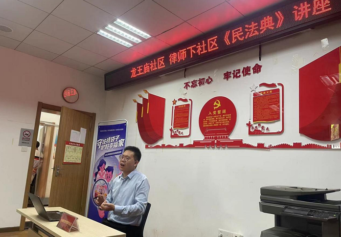 为深入学习宣传贯彻习近平法治思想,贯彻落实“八五”普法规划精神,2022年8月25日,江汉区科学技术协会、武汉金融街管理委员会、武汉众和法律服务中心以《民法典》作为普法重要内容,在民族街道龙王庙社区举办“民法典宣讲进社区 普法惠民润民心”公益普法活动,辖区物业公司代表、社区工作人员、社区居民等数十人参加活动。