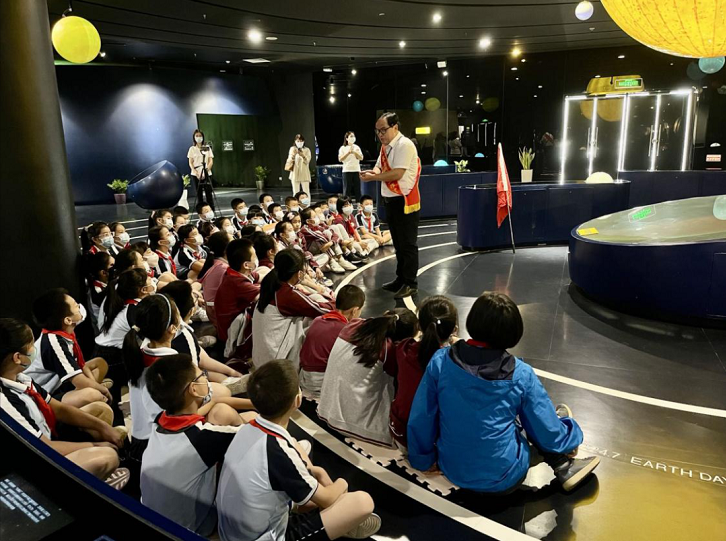 调研组一行先后参观了武汉科技馆科普资源助推“双减”工作成果展、观摩了来自国家自然资源首席科学传播专家,中国科协“科普中国”专家团成员徐世球教授向现场学生讲授的科普主题课程《漫谈宇宙》,“赛因斯科学探究课”的现场活动课“仿生机械——复活鲁班鸟”,参观了生态安全主题科普教育主题展区以及国安主题绘画比赛获奖学生作品展。在活动现场,武汉科技馆还举行了“树牢总体国家安全观 做新时代国家安全小卫士”2022年武汉市暑期青少年国家安全教育系列科普活动授奖礼。