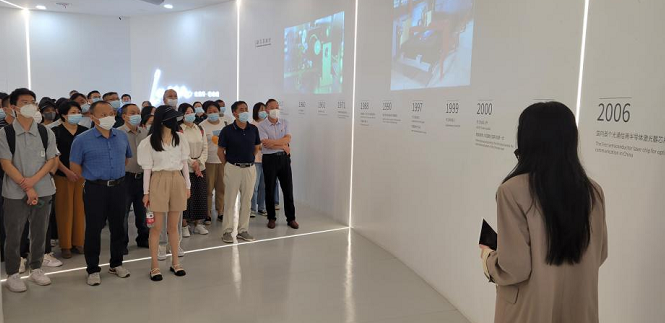 激光如何让中国智造更强大?培训首站,一行人来到国内首个以激光展示和激光应用工艺研究为展示内容的激光科技馆。据悉,该馆是武汉东湖高新区首批入选的党史学习教育基地,也是习近平总书记三次停下脚步细细观看的展馆。馆内一件件实物展品,一段段视频讲解,无不在诠释着——激光比我们想象的更近。从激光工业产学研用协同创新,到在国内率先突破光纤激光器、超快激光器、半导体激光器芯片等一批关键技术,从牵头制定国内激光装备行业首个国际标准,到创造60多项行业“第一”,在讲解员的带领下,大家更全面地了解了华工科技的企业文化、发展历程和核心技术,感受到百年来激光技术的飞速发展与科技创新的磅礴力量,对智能制造和科技强国有了更深层次的感悟。