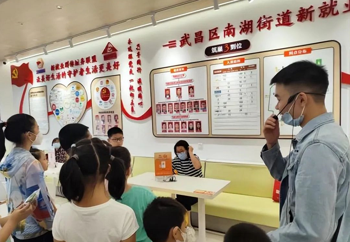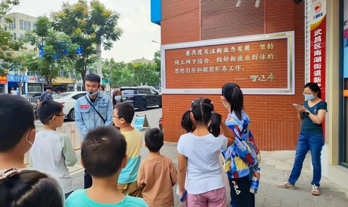 对,没错!正是他们的辛劳付出,才缔造出我们南湖10万居民的美好生活,在场小朋友为他们纷纷鼓掌。随后,老师带领大家参观外卖小哥日常活动,讲述去年飞檐走壁的快递小哥张裕冲进火海,英勇救人事迹,并鼓励在场的家长和小朋友们积极参与社区治理,与网格员、新就业群体共治家园,建设幸福家园!