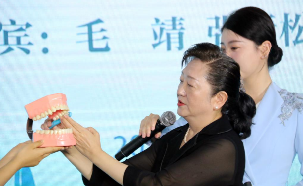 “牙疼不是病,疼起来真要命”。牙齿是身体非常重要的部分,牙齿的好坏直接影响我们的生活和健康。那么究竟该如何保护我们的牙齿呢?我们的刷牙方式正确吗?活动现场,毛靖现场演示了正确的刷牙步骤,“巴氏刷牙法是正确的刷牙方式,我们将牙刷与牙长轴呈45°角,刷毛指向根尖方向,其中,上颌牙向上,下颌牙向下;接着,将刷毛贴近牙龈,使刷毛一部分进入龈沟,一部分铺于龈缘上,并尽可能地伸入邻间隙内,再用轻柔的压力,使刷毛在原位作前后方向短距离的水平颤动10次左右。颤动时,牙刷移动范围约为1mm左右,每次刷2-3个牙。”