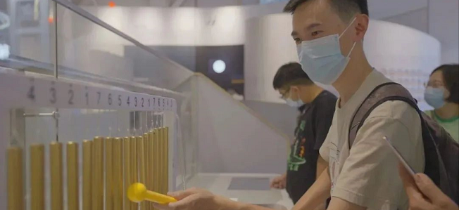 中国建筑科技馆形似一枚种子,据讲解员介绍,这粒“种子”采用了6400块双曲面板,无一相同,科技馆通过采用各类节能设备,有效降低了室内室外能耗,将节水节电的意识体现得淋漓尽致。层出不穷的科技“尖板眼”,处处都彰显着绿色发展的理念,在场科技志愿者们赞叹不已,纷纷拍照打卡留影。