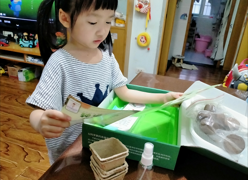 活动中,工作人员为每位小朋友准备了一套科学种植的实验套装,里面包含绿豆、小麦、萝卜、空心菜等各类种子,让小朋友们带回家和爸爸妈妈一起按照说明书来种植。