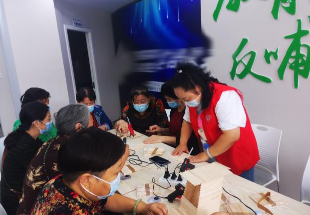 “咳嗽或打喷嚏时我们的正确做法是?”“哪种口罩不适合预防新型冠状病毒使用?”科技志愿者为辖区居民进行科学防疫知识宣传普及,随后,科技志愿者带领辖区居民进行一场手工制作活动,制作“扫码神奇”,助力核酸检测。20名辖区居民在志愿者的指导下,用冰棒棍、胶枪等工具,合作制作出了一个个独具特色的“扫码神奇”。通过此次科学防疫知识普及主题活动,增强了社区居民对防疫知识的了解,进一步提升社区居民的防疫意识和能力。