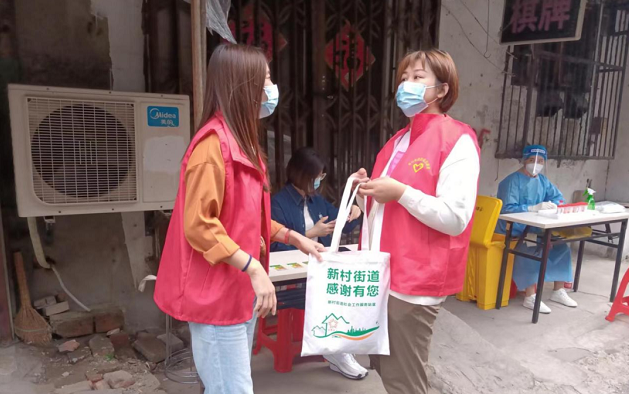 在疫情常态化形势下,新村街道涌现了一批乐于奉献、敢于担当的志愿者,他们在疫情防控工作贡献自己的力量,他们用“志愿红”点亮了战胜疫情的希望之光,为对辖区防疫志愿者予以表彰,激励志愿者参与社区治理。新村街道科协精心准备礼品作为积分兑换物资,感谢志愿者在疫情防控工作中的付出与坚守。随后,科技志愿者来到新村街道核酸点位对一线防疫工作人员一一表达慰问感谢。