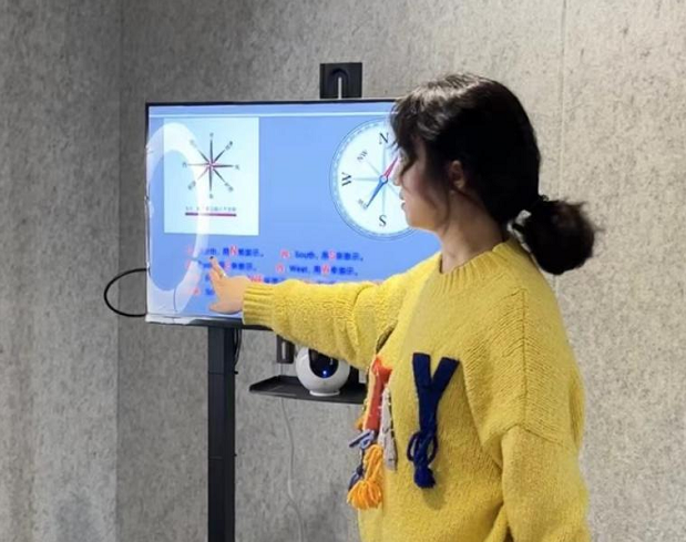 接着,老师为大家讲解了指南针如何稳定自由转动,以及如何准确地确定出磁针所指方位。不仅要确定东南西北四个固定大方向,也要了解东南、东北、西南、西北这些方位。加强了孩子们对于方位的详细认知。