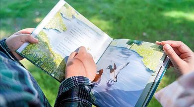 记者翻阅看到,绘本背景大多为水生植物茂盛的开阔水域,整体为清新自然的青色调,与青头潜鸭的暖色调形成对比,突出主体。画面趣味性和故事性比较强,温馨的场景,生动还原了青头潜鸭在武汉“相亲”、孵蛋、带娃的幸福生活。在清澈的水中潜水捕鱼,躺在荷叶上悠闲乘凉,在芦苇丛中自由飞翔……一幕幕美丽画面,让读者不知不觉中爱上了和我们比邻而居的精灵。