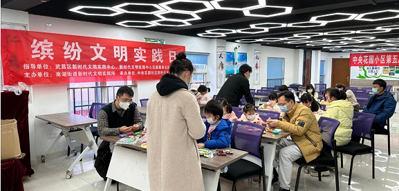 兔年新春将至,在春节期间,全国各地均会举行各种庆贺新春活动,带有浓郁的各地地方特色。为丰富社区居民的文化生活,带领更多青少年儿童了解我们春节的文化底蕴,1月13日上午,武昌区南湖街道中央花园社区联合武汉华夏理工学院来思产学研名师工作室的老师们,开展了“迎新春·贺兔年”亲子手工DIY活动,为辖区青少年带来一节具有深刻意义的课程。