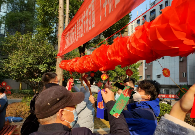 2月1日上午9:30,丁字桥社区长投珑庭小区的文化长廊,挂满了五颜六色的灯谜,志愿者热情地给居民科普元宵节的历史渊源、传统风俗,让大家对中华民族的传统文化有更深入的了解,猜灯谜,体验传统民俗的乐趣。而包罗万象的谜面,更是吸引人们驻足停留,争相竞猜,现场一片欢声笑语。猜灯谜的环节,既具有娱乐性又具有知识性,以家庭为单位,凭猜中谜底积累积分兑换奖品,孩子们尤其积极,有的在冥思苦想、口中还念念有词;有的猜中谜底,更是扬起笑脸,一路飞奔找工作人员兑换奖品,广场上一片沸腾!